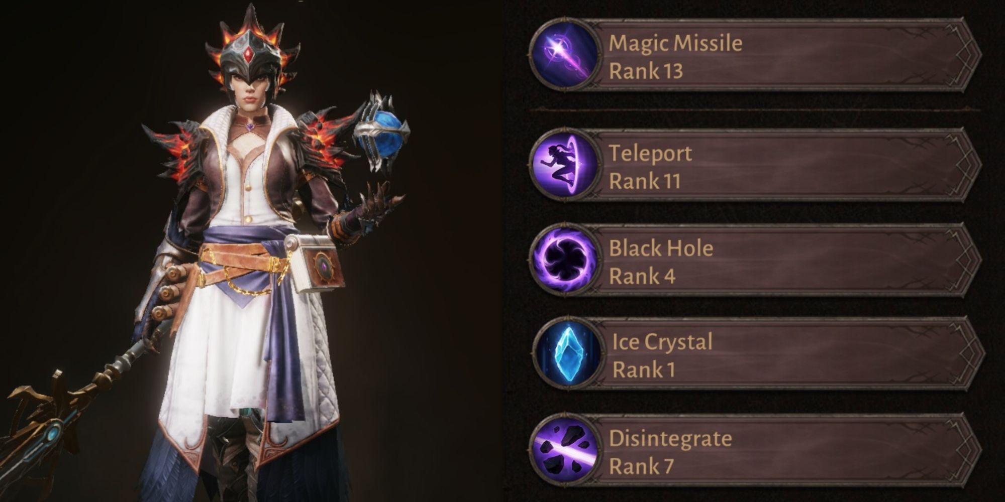 I aim for intelligence first, then vitality. A rough 3:1 damage:survival split works well on most solo runs. Cooldown reduction matters more than you think because Teleport uptime can save runs. Critical chance and damage are good, but don’t chase them at the cost of staying alive.