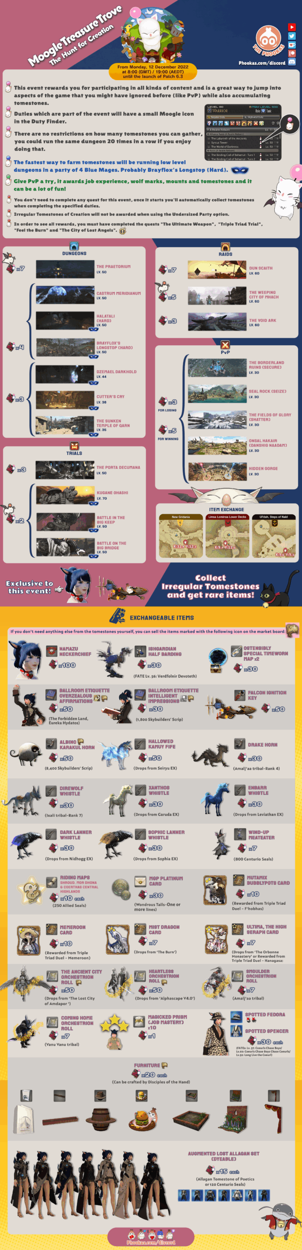 The Moogle Treasure Trove gives you Irregular Tomestones for specific duties. You exchange those tomestones for event-only rewards. The earning window is usually 21 days and the exchange window often lasts 7 days after earning ends (so plan your push and your purchases).
