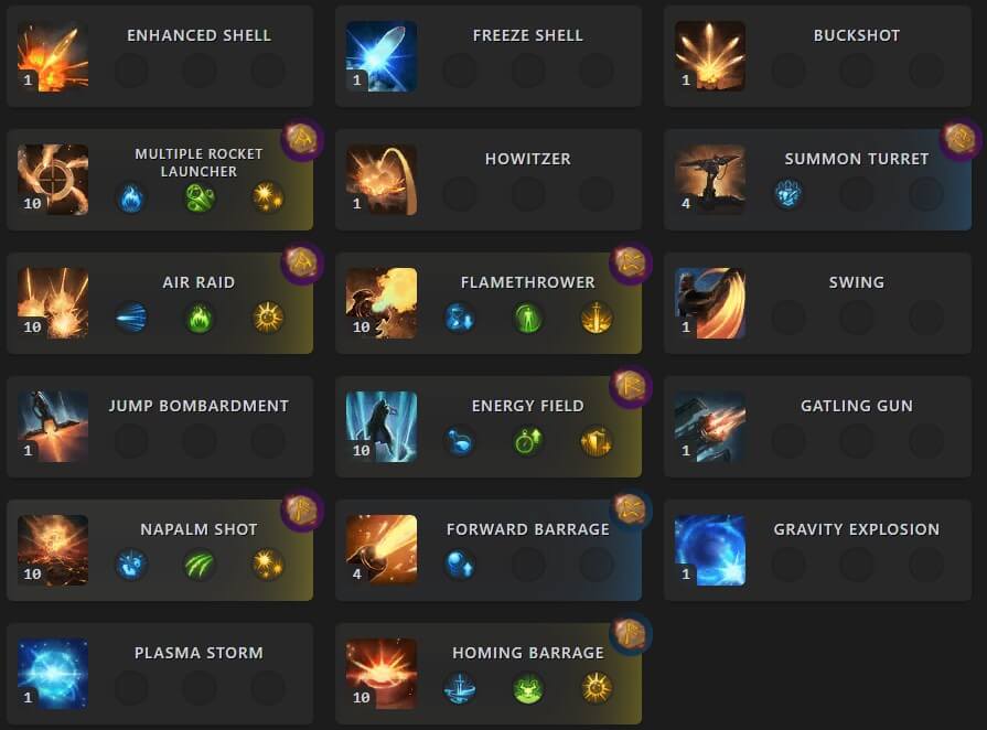 | Napalm Shot | Consistent AOE pressure; good for sustained windows | Damage increase, charge hold, area size |