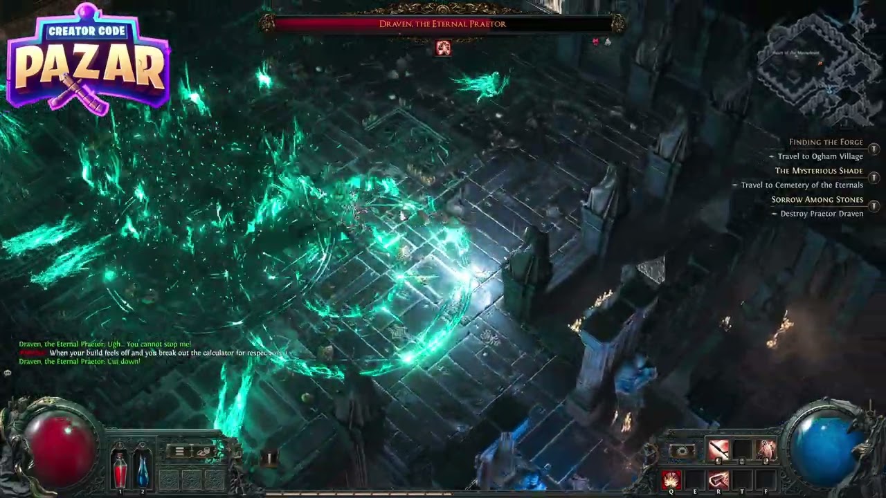 Drayven drops a guaranteed rare plus chances at uniques. Community tests and my runs (March 2025) show the signature helmet, Eternal Vigil, roughly ~15% drop when farming — take that with a grain; individual runs vary. Praetor’s Pride appears less often. Currency tends to be reliable, and most runs net decent crafting bases.