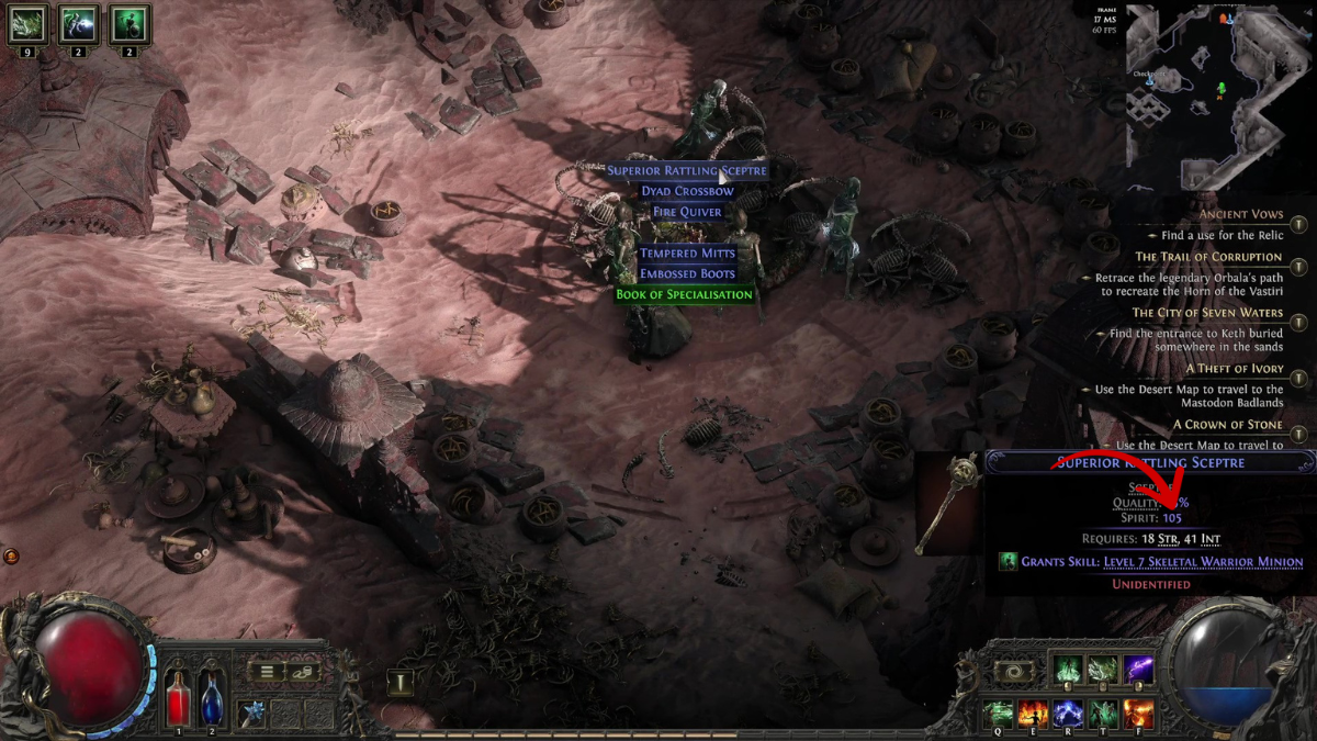 Spirit is a static cap. It doesn’t regenerate in combat. When an aura or minion reserves Spirit it reduces your available pool until you turn it off. Deactivating frees the amount immediately. Some skills scale their Spirit cost with gem level (this is why gem level choices matter).